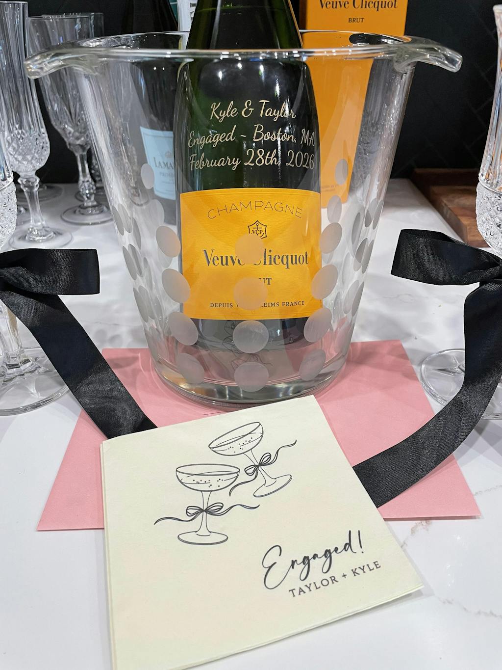 为您的凯歌黄牌香槟添加自定义雕刻 — 非常适合生日、周年纪念日、节日、客户礼物和任何特殊场合。